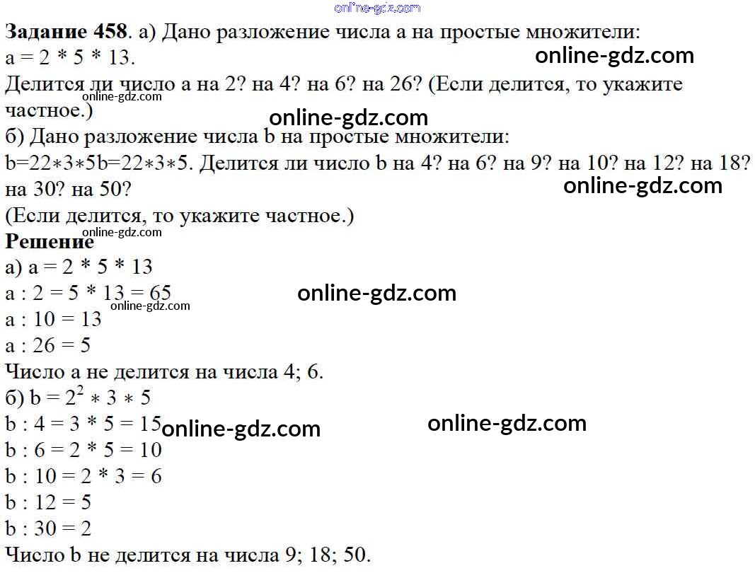 Готовые домашние задания по Математике за 5 класс Учебник Дорофеев, Шарыгин 2015 - 6.2. Простые и составные Глава 6. Делимость чисел 458