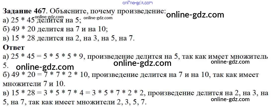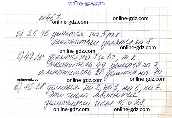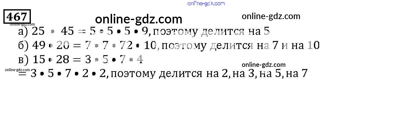 Готовые домашние задания по Математике за 5 класс Учебник Дорофеев, Шарыгин 2015 - 6.3. Свойства делимости Глава 6. Делимость чисел 467