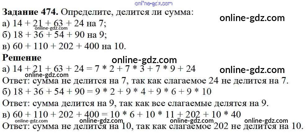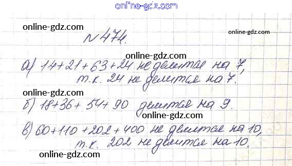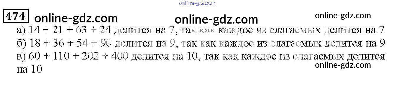 Готовые домашние задания по Математике за 5 класс Учебник Дорофеев, Шарыгин 2015 - 6.3. Свойства делимости Глава 6. Делимость чисел 474