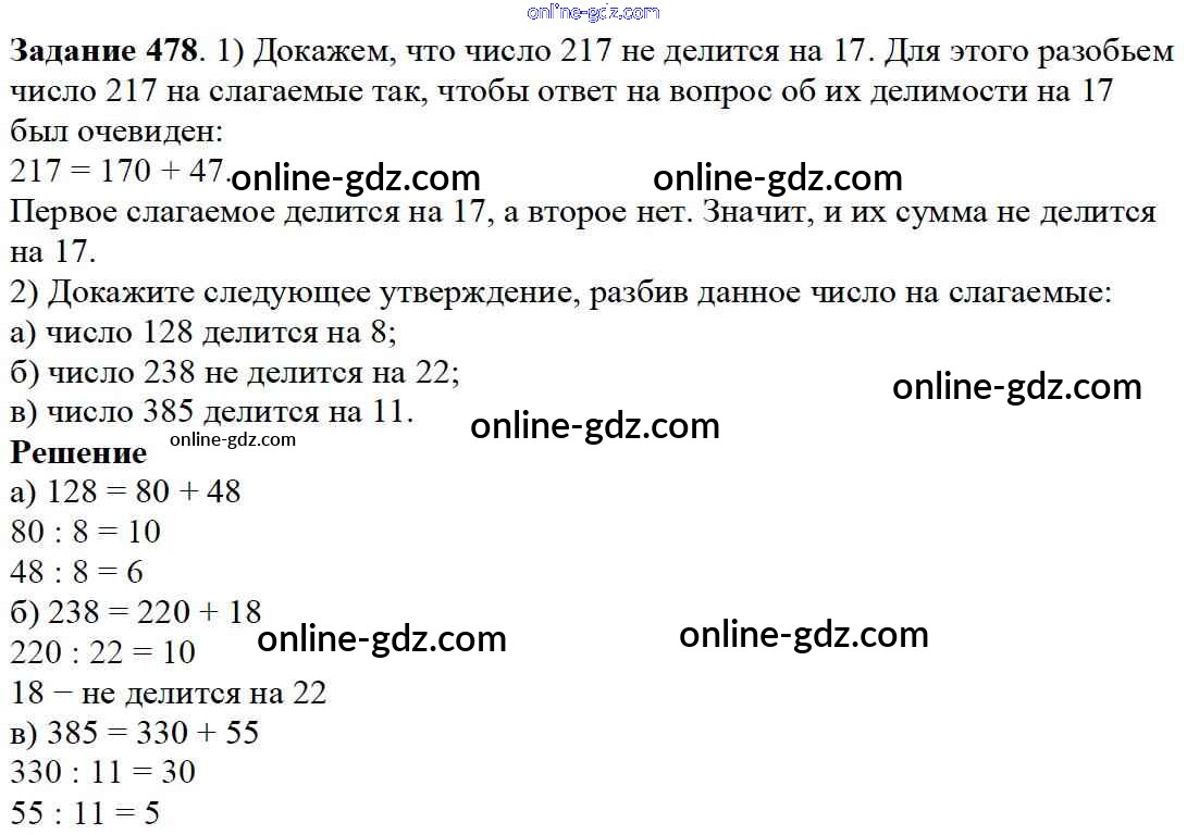 Готовые домашние задания по Математике за 5 класс Учебник Дорофеев, Шарыгин 2015 - 6.3. Свойства делимости Глава 6. Делимость чисел 478