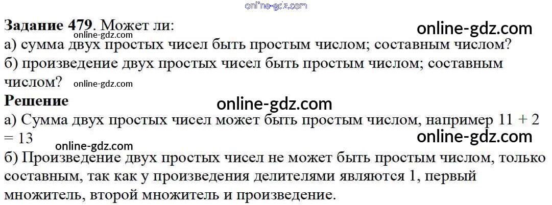 Готовые домашние задания по Математике за 5 класс Учебник Дорофеев, Шарыгин 2015 - 6.3. Свойства делимости Глава 6. Делимость чисел 479