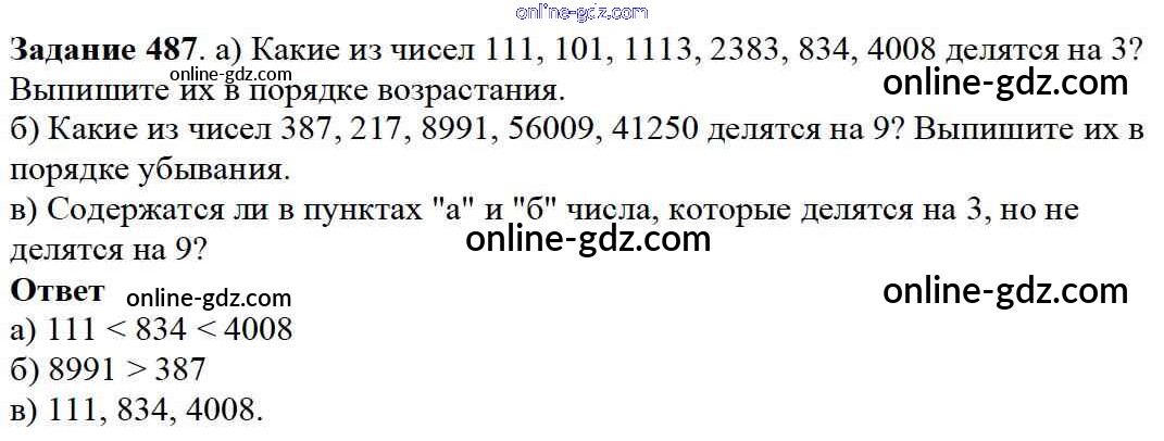 Готовые домашние задания по Математике за 5 класс Учебник Дорофеев, Шарыгин 2015 - 6.4. Признаки делимости Глава 6. Делимость чисел 487