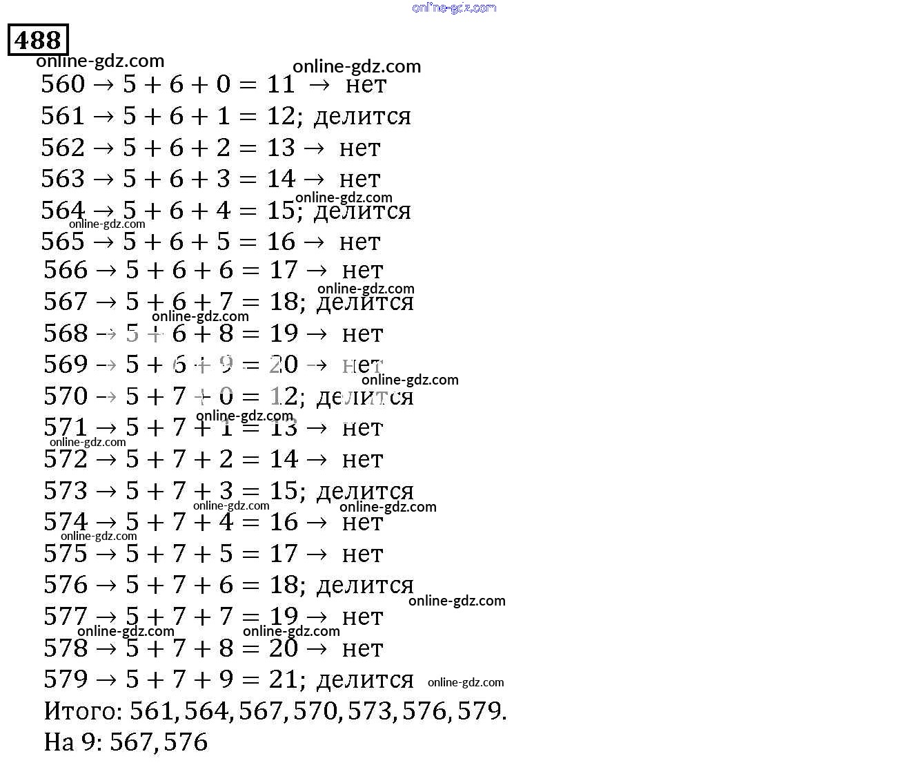 Готовые домашние задания по Математике за 5 класс Учебник Дорофеев, Шарыгин 2015 - 6.4. Признаки делимости Глава 6. Делимость чисел 488