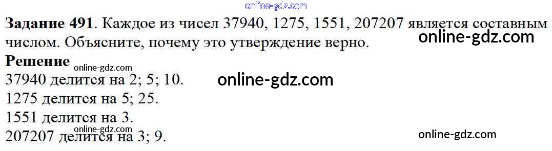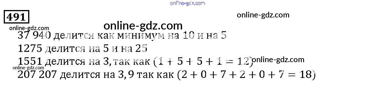 Готовые домашние задания по Математике за 5 класс Учебник Дорофеев, Шарыгин 2015 - 6.4. Признаки делимости Глава 6. Делимость чисел 491