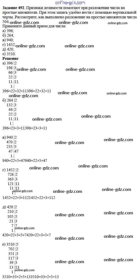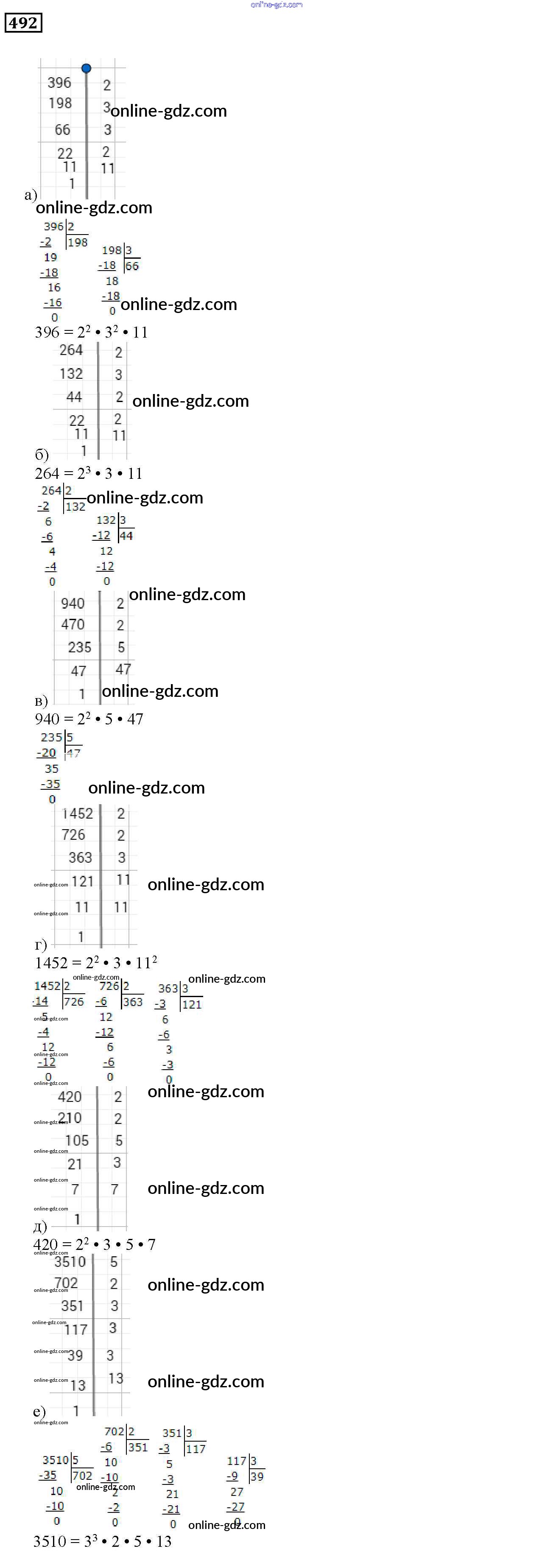 Готовые домашние задания по Математике за 5 класс Учебник Дорофеев, Шарыгин 2015 - 6.4. Признаки делимости Глава 6. Делимость чисел 492