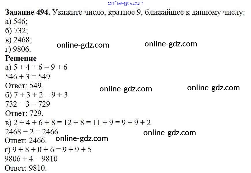 Готовые домашние задания по Математике за 5 класс Учебник Дорофеев, Шарыгин 2015 - 6.4. Признаки делимости Глава 6. Делимость чисел 494