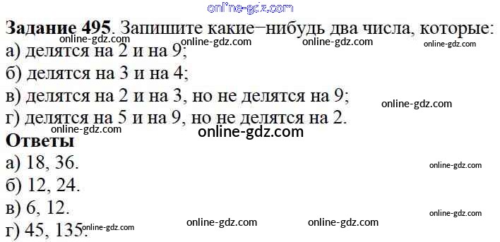 Готовые домашние задания по Математике за 5 класс Учебник Дорофеев, Шарыгин 2015 - 6.4. Признаки делимости Глава 6. Делимость чисел 495