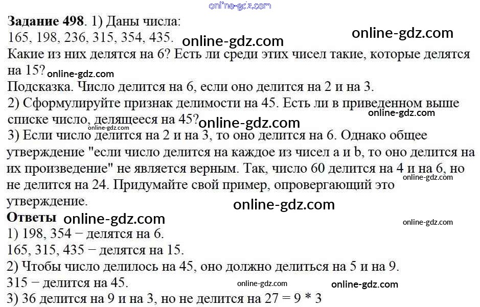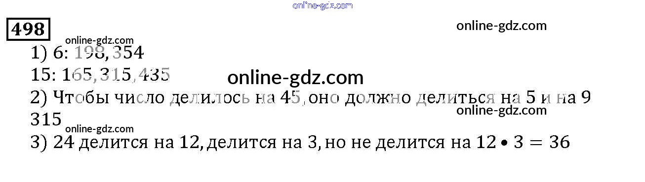 Готовые домашние задания по Математике за 5 класс Учебник Дорофеев, Шарыгин 2015 - 6.4. Признаки делимости Глава 6. Делимость чисел 498