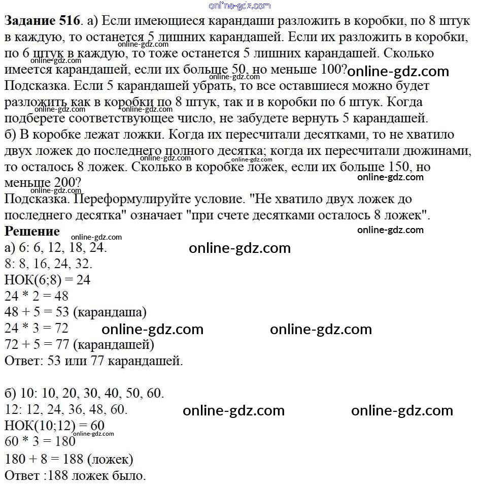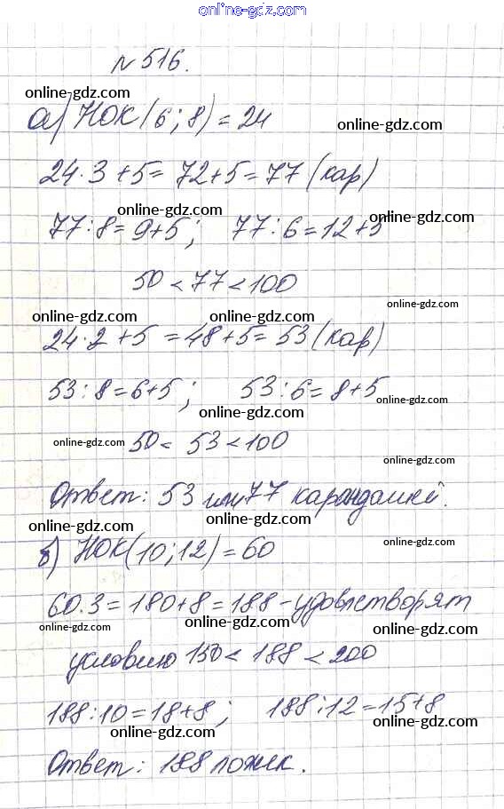 Готовые домашние задания по Математике за 5 класс Учебник Дорофеев, Шарыгин 2015 - 6.5. Деление с остатком Глава 6. Делимость чисел 516