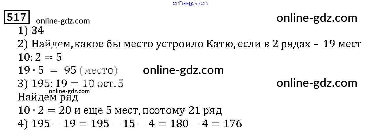 Готовые домашние задания по Математике за 5 класс Учебник Дорофеев, Шарыгин 2015 - 6.5. Деление с остатком Глава 6. Делимость чисел 517