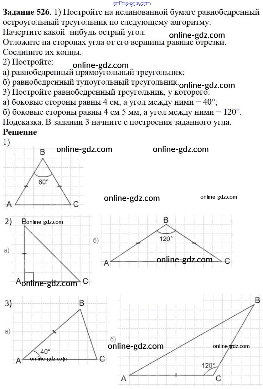 Готовые домашние задания по Математике за 5 класс Учебник Дорофеев, Шарыгин 2015 - 7.1. Треугольники и их виды Глава 7. Треугольники и четырехугольники 526