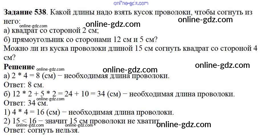 Готовые домашние задания по Математике за 5 класс Учебник Дорофеев, Шарыгин 2015 - 7.2. Прямоугольники Глава 7. Треугольники и четырехугольники 538