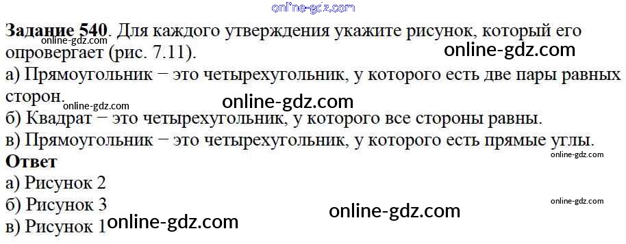 Готовые домашние задания по Математике за 5 класс Учебник Дорофеев, Шарыгин 2015 - 7.2. Прямоугольники Глава 7. Треугольники и четырехугольники 540