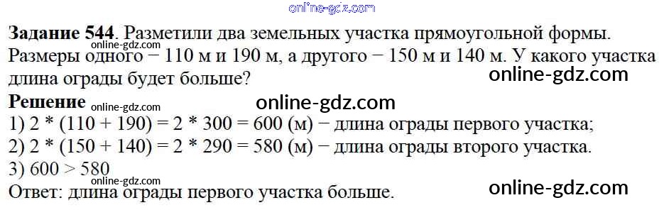 Готовые домашние задания по Математике за 5 класс Учебник Дорофеев, Шарыгин 2015 - 7.2. Прямоугольники Глава 7. Треугольники и четырехугольники 544