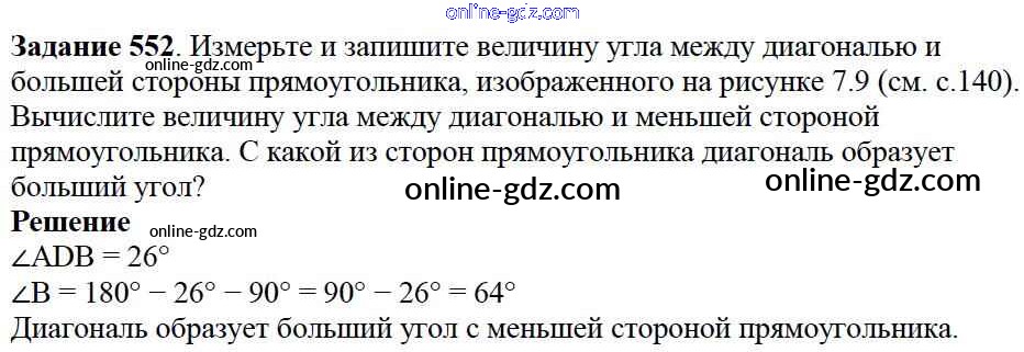 Готовые домашние задания по Математике за 5 класс Учебник Дорофеев, Шарыгин 2015 - 7.2. Прямоугольники Глава 7. Треугольники и четырехугольники 552