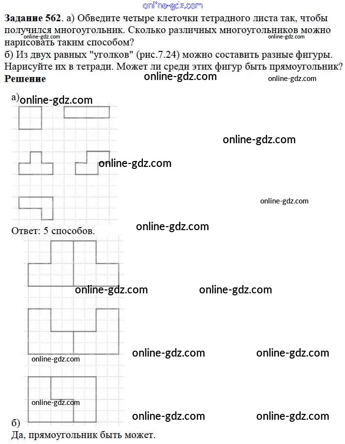 Готовые домашние задания по Математике за 5 класс Учебник Дорофеев, Шарыгин 2015 - 7.3. Равенство фигур Глава 7. Треугольники и четырехугольники 562