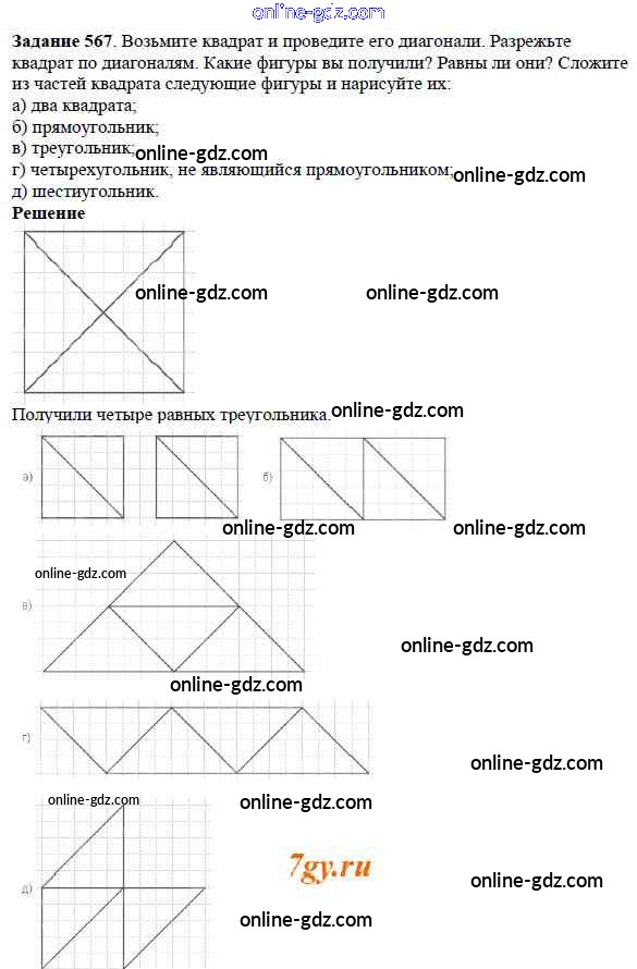 Готовые домашние задания по Математике за 5 класс Учебник Дорофеев, Шарыгин 2015 - 7.3. Равенство фигур Глава 7. Треугольники и четырехугольники 567