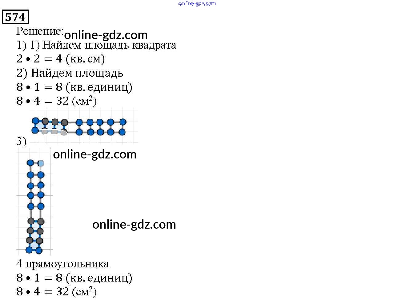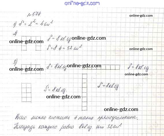 Готовые домашние задания по Математике за 5 класс Учебник Дорофеев, Шарыгин 2015 - 7.4. Площадь прямоугольника Глава 7. Треугольники и четырехугольники 574