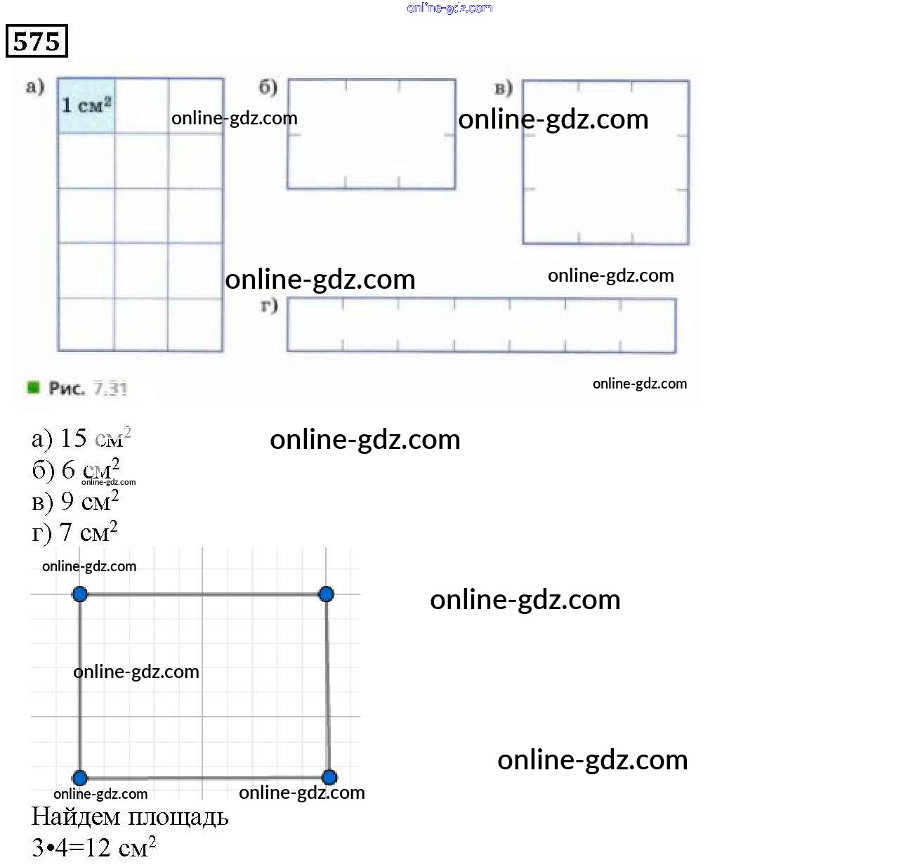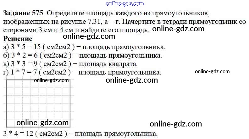 Готовые домашние задания по Математике за 5 класс Учебник Дорофеев, Шарыгин 2015 - 7.4. Площадь прямоугольника Глава 7. Треугольники и четырехугольники 575