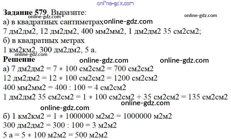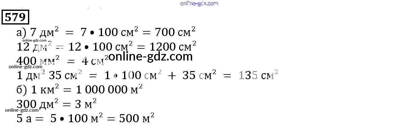 Готовые домашние задания по Математике за 5 класс Учебник Дорофеев, Шарыгин 2015 - 7.4. Площадь прямоугольника Глава 7. Треугольники и четырехугольники 579