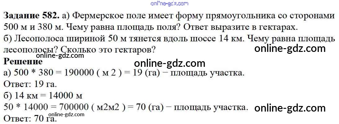 Готовые домашние задания по Математике за 5 класс Учебник Дорофеев, Шарыгин 2015 - 7.4. Площадь прямоугольника Глава 7. Треугольники и четырехугольники 582