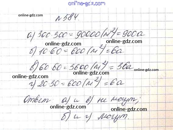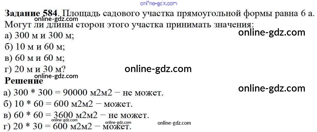 Готовые домашние задания по Математике за 5 класс Учебник Дорофеев, Шарыгин 2015 - 7.4. Площадь прямоугольника Глава 7. Треугольники и четырехугольники 584
