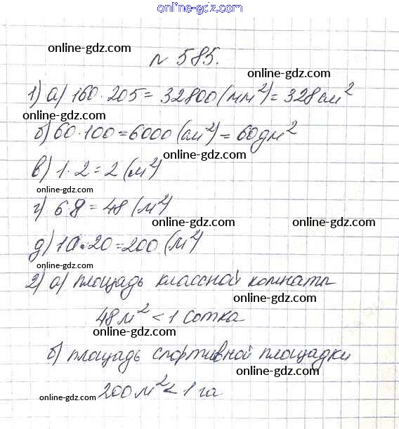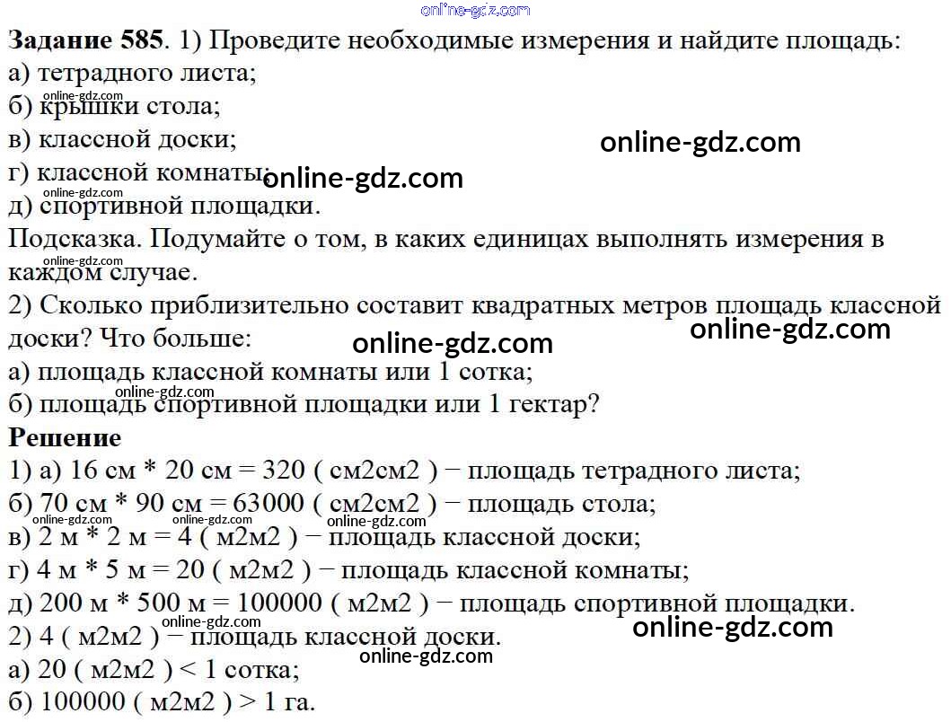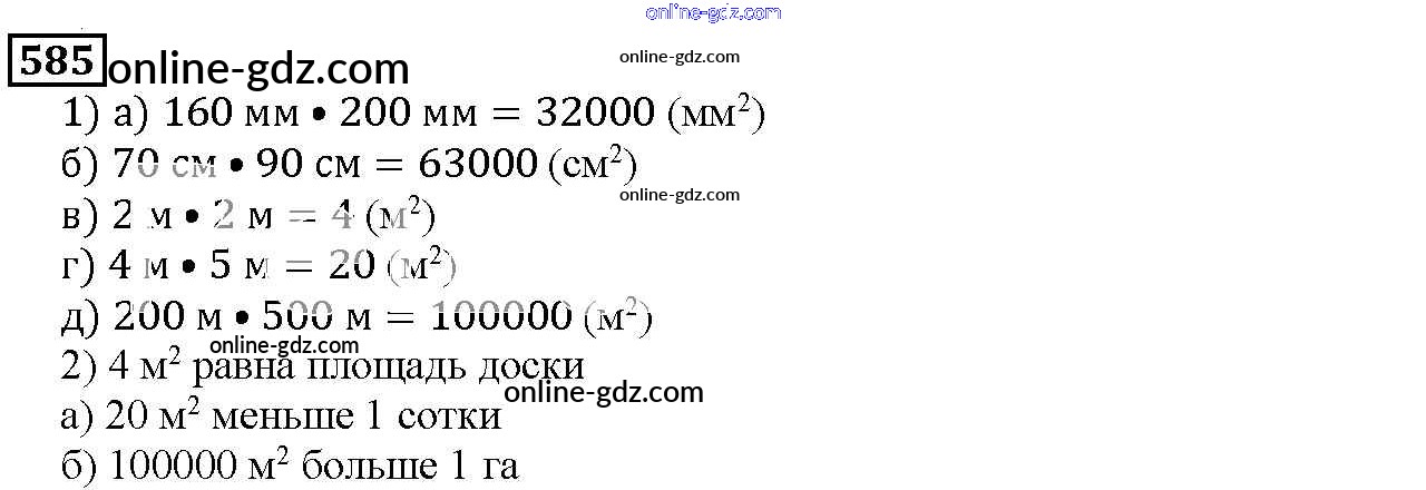 Готовые домашние задания по Математике за 5 класс Учебник Дорофеев, Шарыгин 2015 - 7.4. Площадь прямоугольника Глава 7. Треугольники и четырехугольники 585