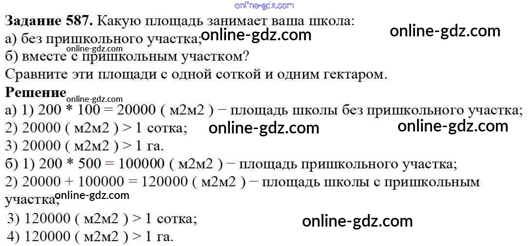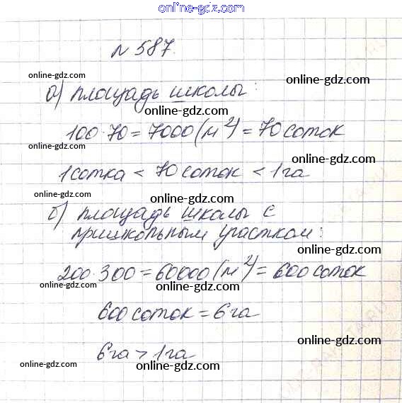 Готовые домашние задания по Математике за 5 класс Учебник Дорофеев, Шарыгин 2015 - 7.4. Площадь прямоугольника Глава 7. Треугольники и четырехугольники 587