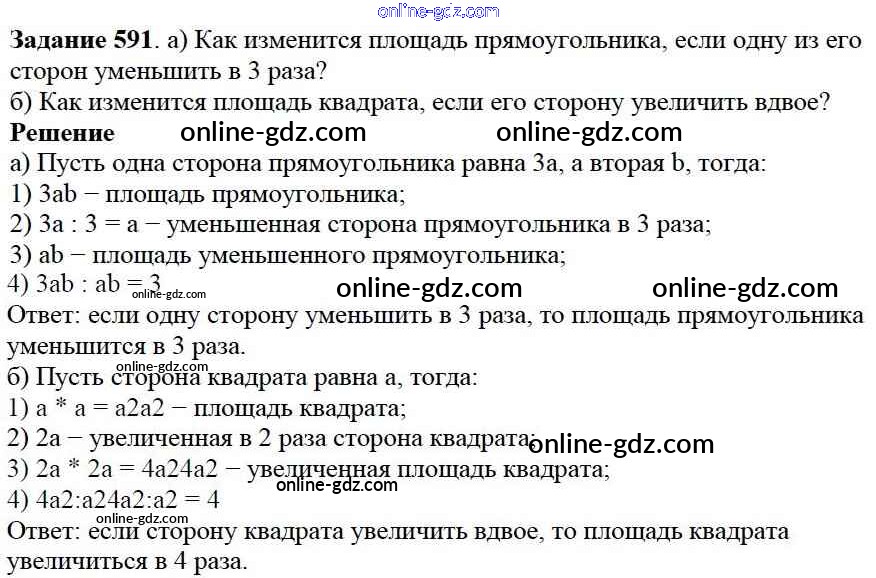Готовые домашние задания по Математике за 5 класс Учебник Дорофеев, Шарыгин 2015 - 7.4. Площадь прямоугольника Глава 7. Треугольники и четырехугольники 591