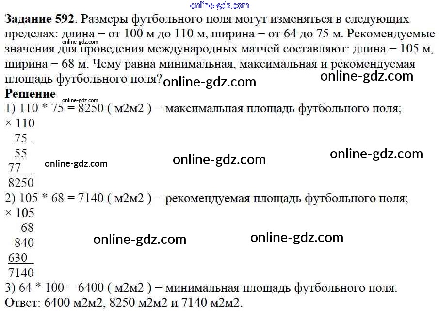 Готовые домашние задания по Математике за 5 класс Учебник Дорофеев, Шарыгин 2015 - 7.4. Площадь прямоугольника Глава 7. Треугольники и четырехугольники 592