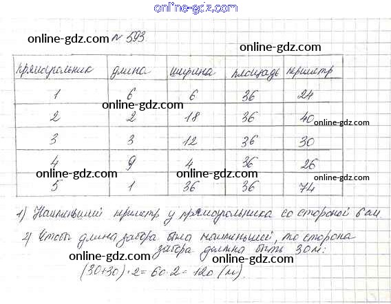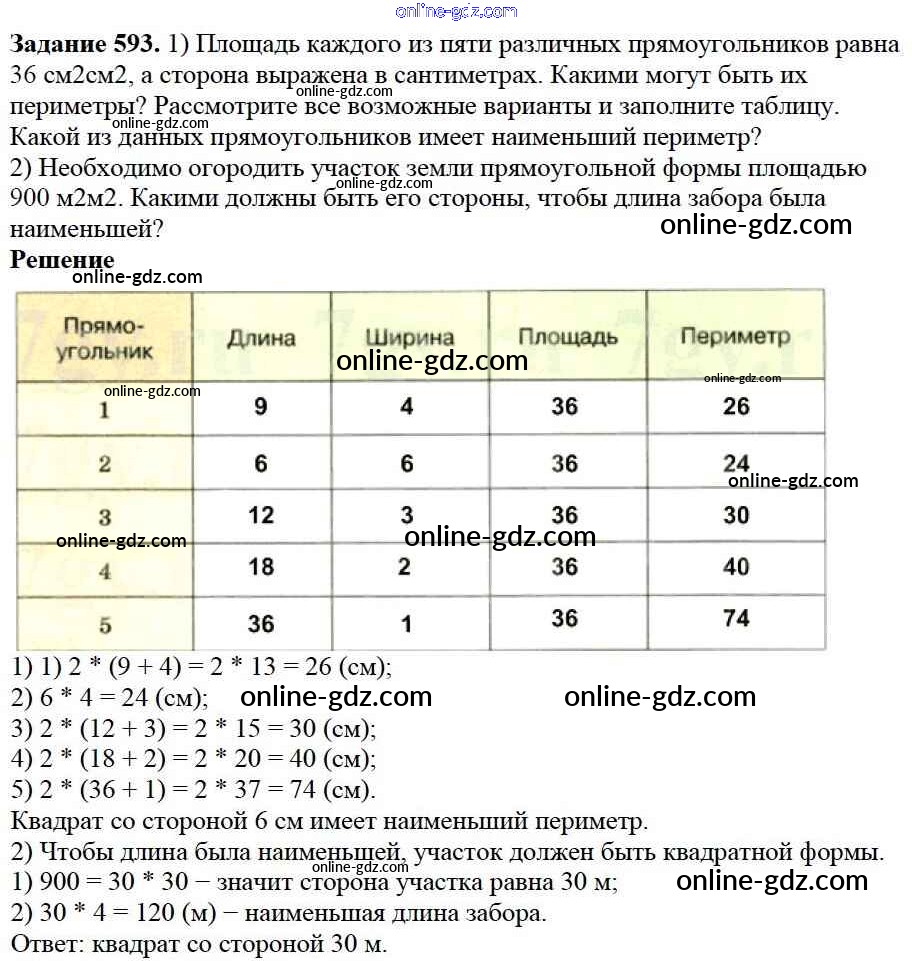 Готовые домашние задания по Математике за 5 класс Учебник Дорофеев, Шарыгин 2015 - 7.4. Площадь прямоугольника Глава 7. Треугольники и четырехугольники 593
