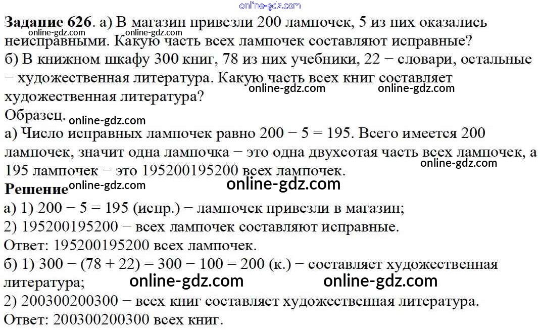 Готовые домашние задания по Математике за 5 класс Учебник Дорофеев, Шарыгин 2015 - 8.2. Что такое дробь Глава 8. Дроби 626