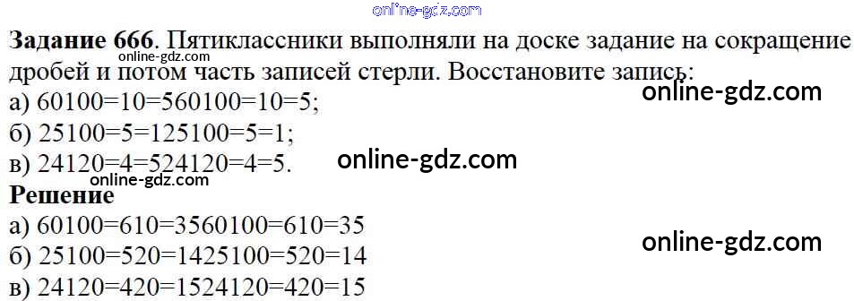 Готовые домашние задания по Математике за 5 класс Учебник Дорофеев, Шарыгин 2015 - 8.3. Основное свойство дроби Глава 8. Дроби 666