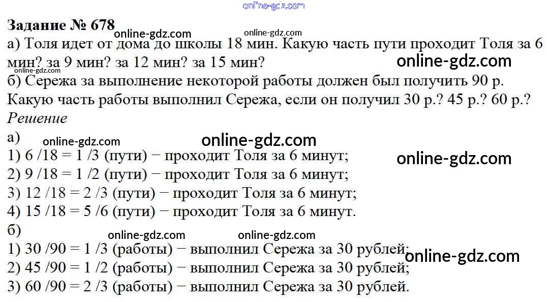 Готовые домашние задания по Математике за 5 класс Учебник Дорофеев, Шарыгин 2015 - 8.3. Основное свойство дроби Глава 8. Дроби 678