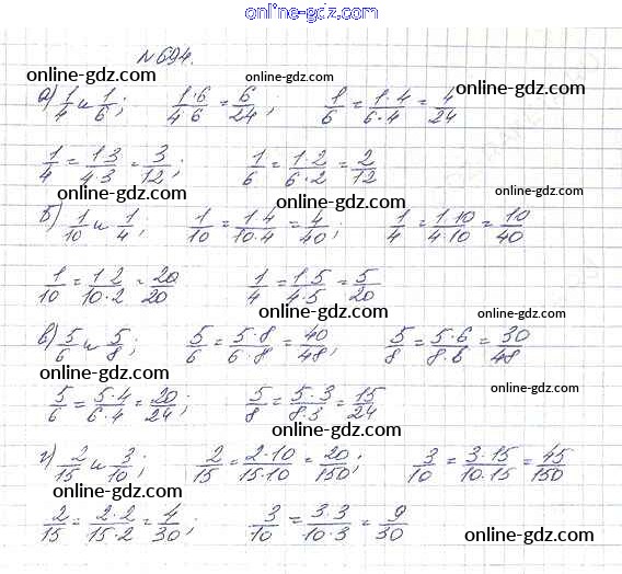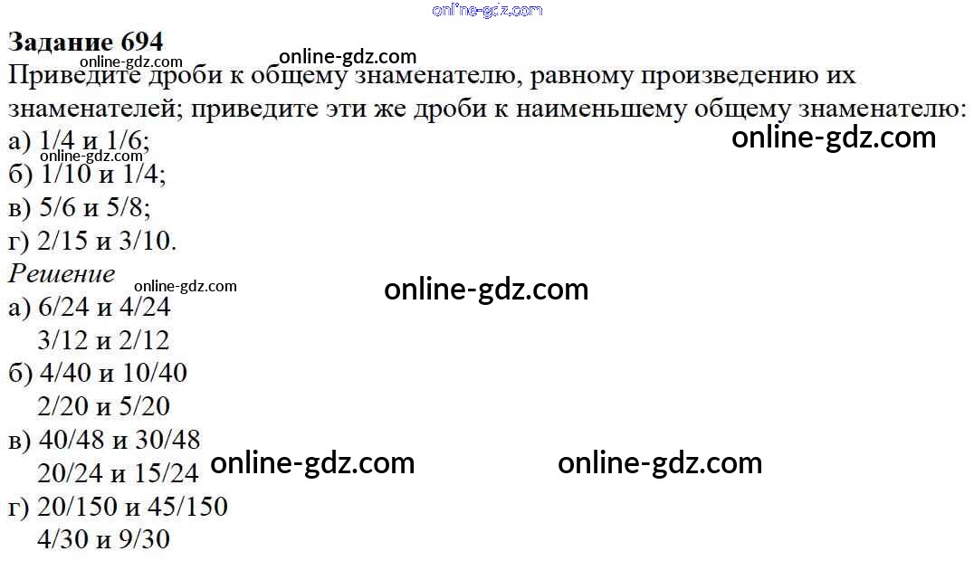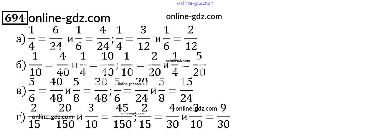 Готовые домашние задания по Математике за 5 класс Учебник Дорофеев, Шарыгин 2015 - 8.4. Приведение дробей к общему знаменателю Глава 8. Дроби 694