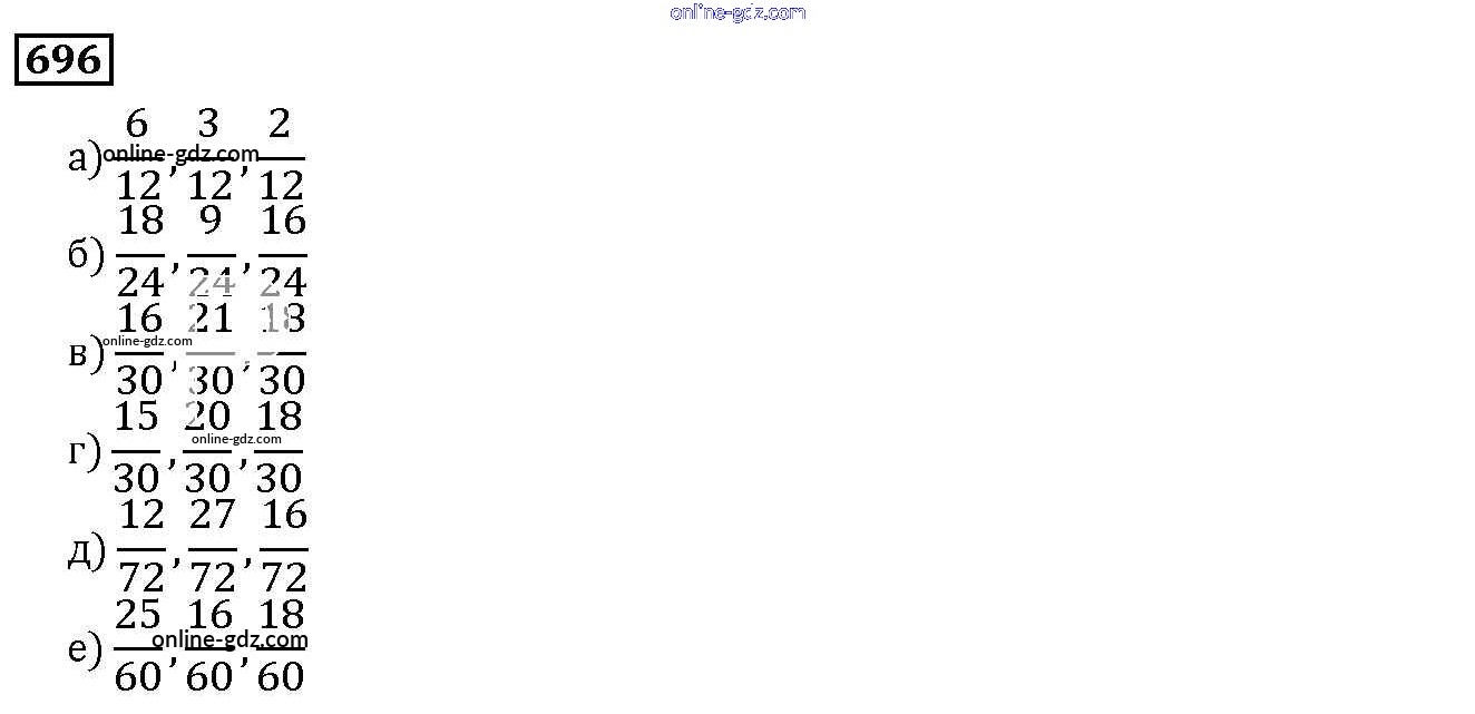Готовые домашние задания по Математике за 5 класс Учебник Дорофеев, Шарыгин 2015 - 8.4. Приведение дробей к общему знаменателю Глава 8. Дроби 696
