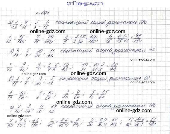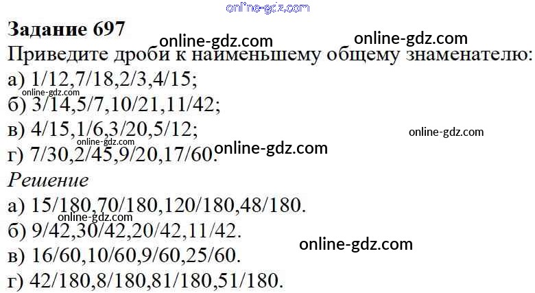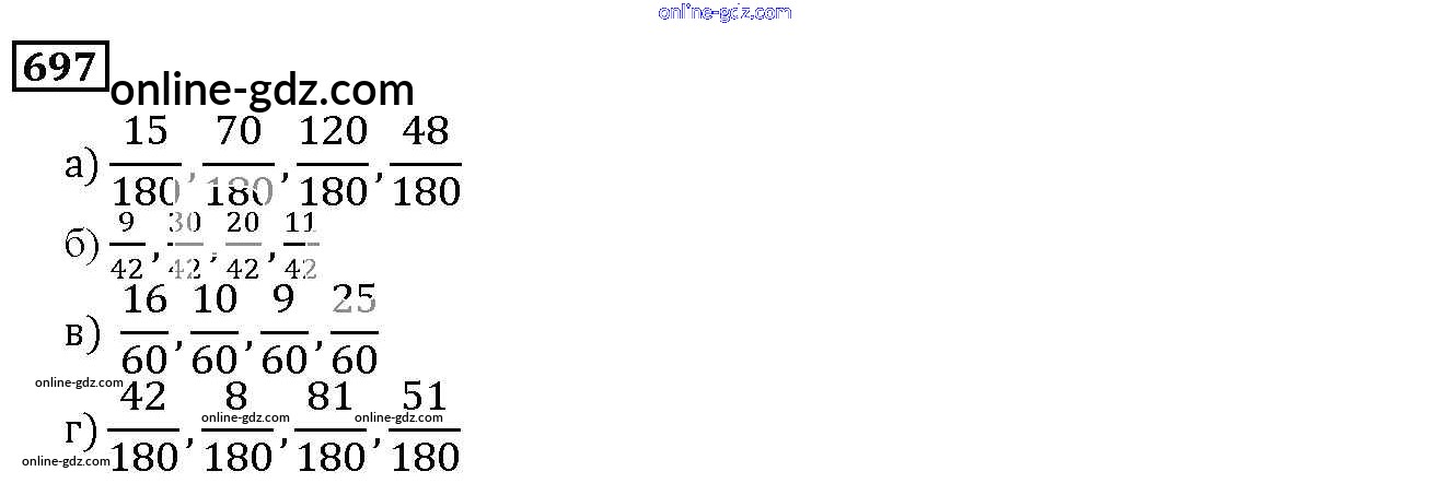 Готовые домашние задания по Математике за 5 класс Учебник Дорофеев, Шарыгин 2015 - 8.4. Приведение дробей к общему знаменателю Глава 8. Дроби 697
