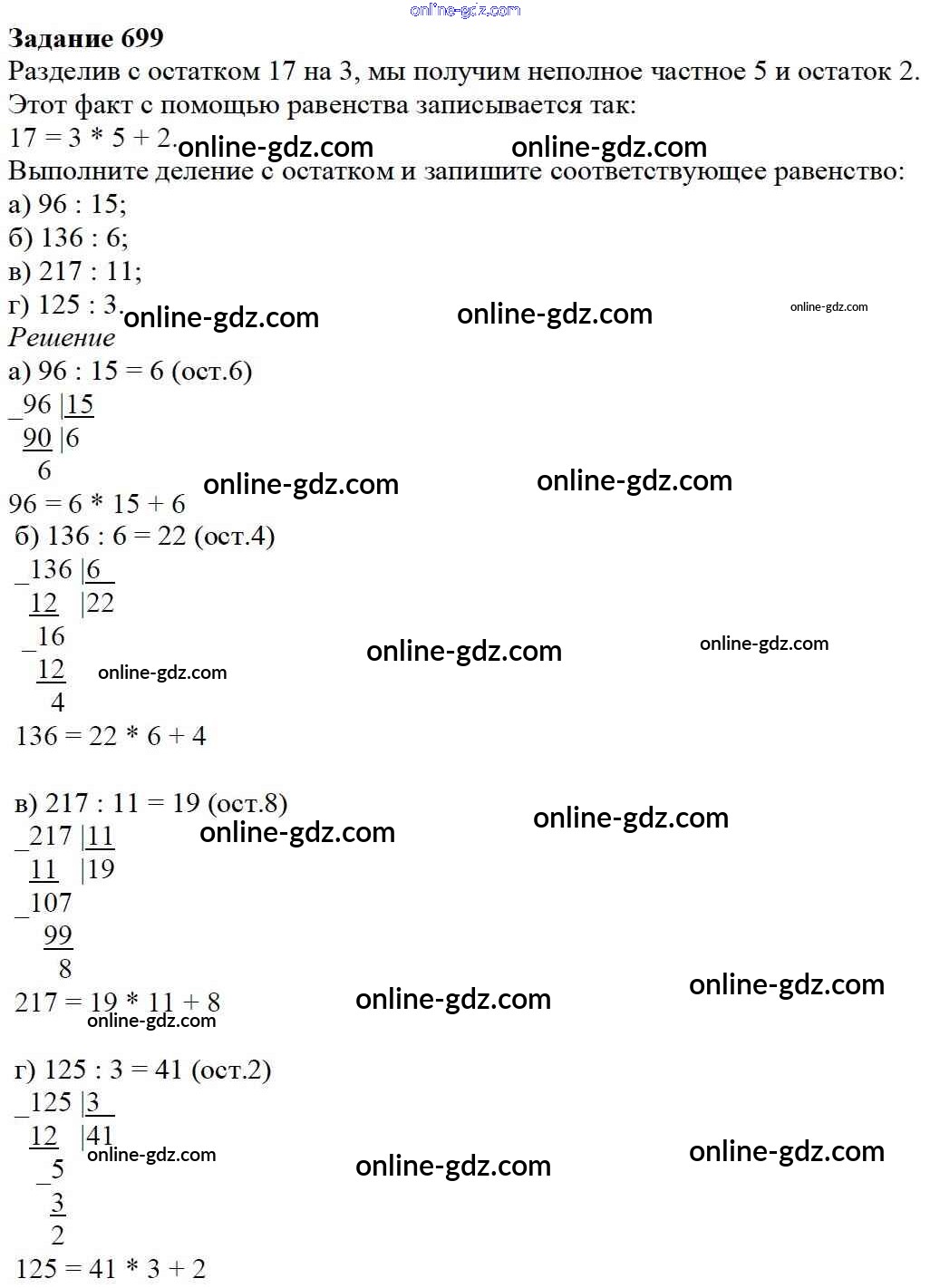 Готовые домашние задания по Математике за 5 класс Учебник Дорофеев, Шарыгин 2015 - 8.4. Приведение дробей к общему знаменателю Глава 8. Дроби 699