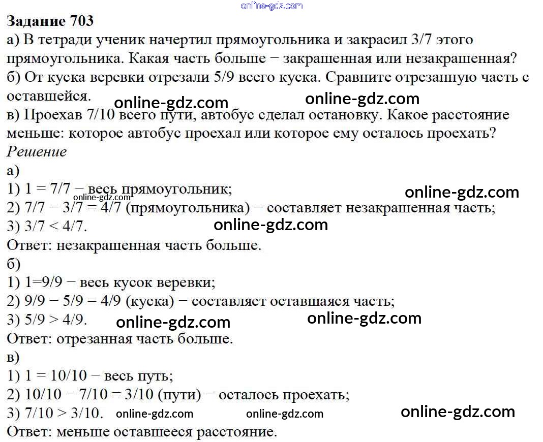 Готовые домашние задания по Математике за 5 класс Учебник Дорофеев, Шарыгин 2015 - 8.5. Сравнение дробей Глава 8. Дроби 703