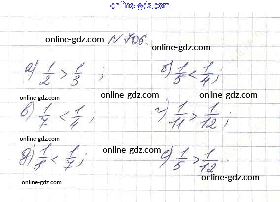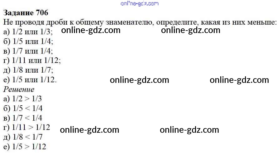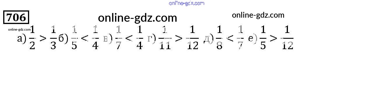 Готовые домашние задания по Математике за 5 класс Учебник Дорофеев, Шарыгин 2015 - 8.5. Сравнение дробей Глава 8. Дроби 706