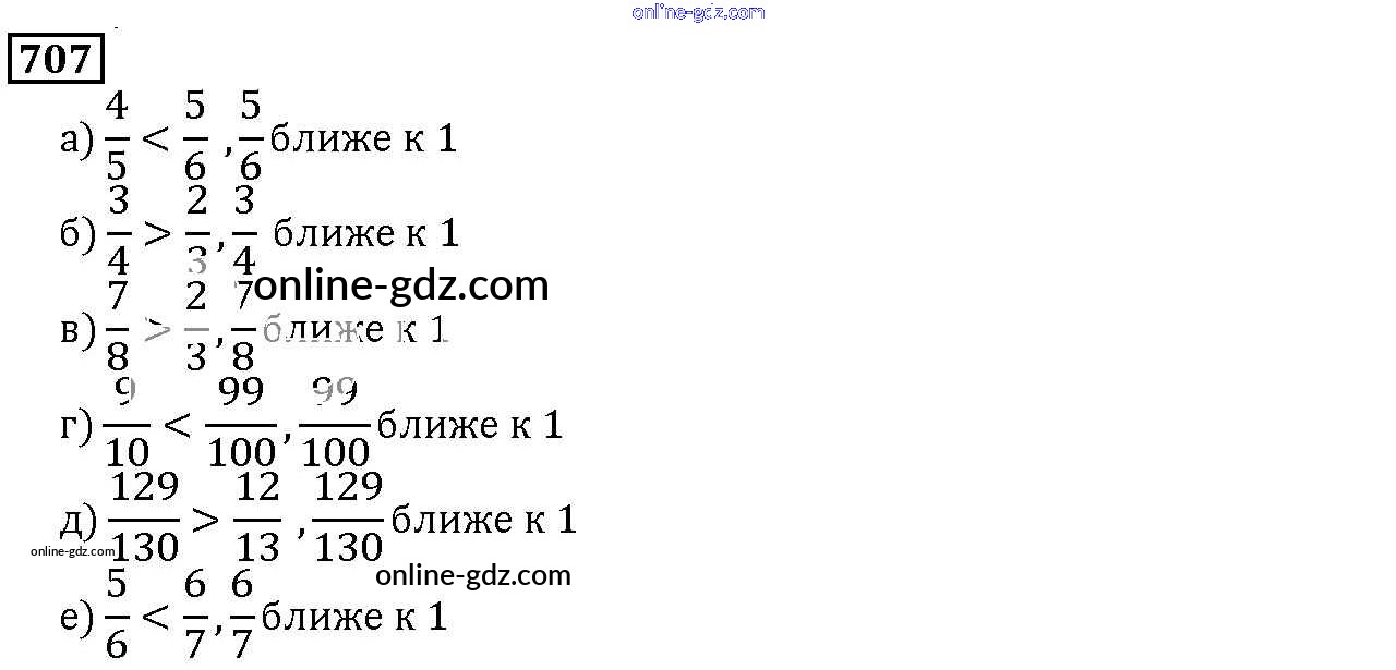 Готовые домашние задания по Математике за 5 класс Учебник Дорофеев, Шарыгин 2015 - 8.5. Сравнение дробей Глава 8. Дроби 707