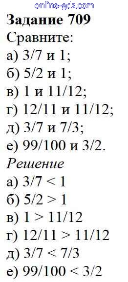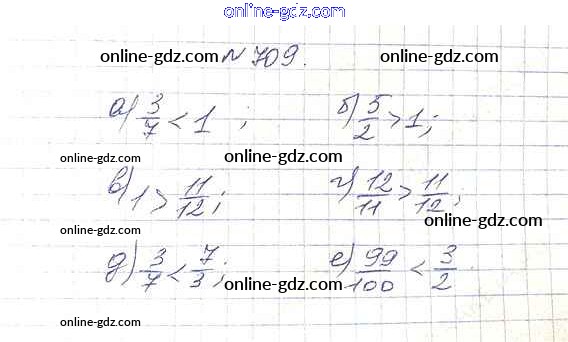 Готовые домашние задания по Математике за 5 класс Учебник Дорофеев, Шарыгин 2015 - 8.5. Сравнение дробей Глава 8. Дроби 709