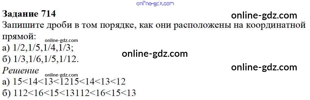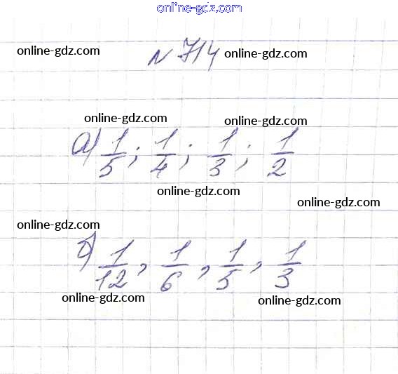 Готовые домашние задания по Математике за 5 класс Учебник Дорофеев, Шарыгин 2015 - 8.5. Сравнение дробей Глава 8. Дроби 714