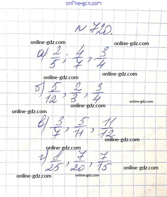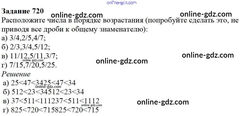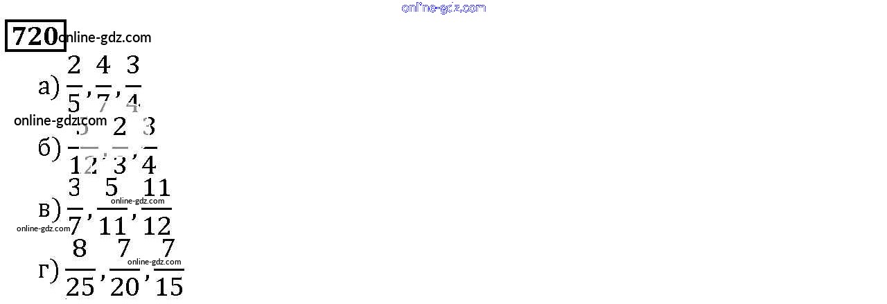 Готовые домашние задания по Математике за 5 класс Учебник Дорофеев, Шарыгин 2015 - 8.5. Сравнение дробей Глава 8. Дроби 720