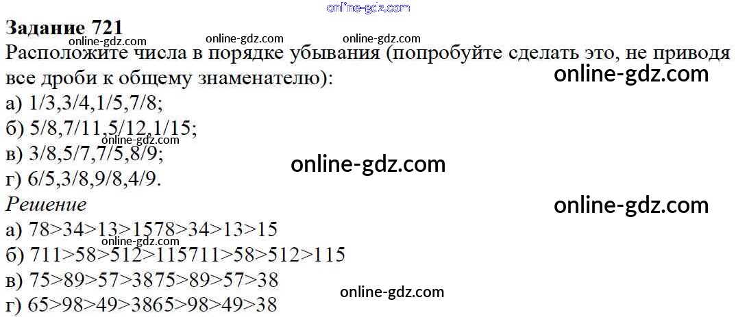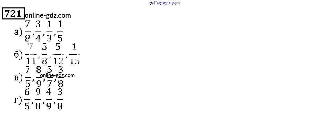 Готовые домашние задания по Математике за 5 класс Учебник Дорофеев, Шарыгин 2015 - 8.5. Сравнение дробей Глава 8. Дроби 721