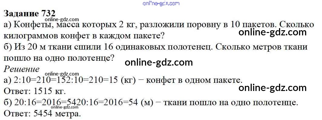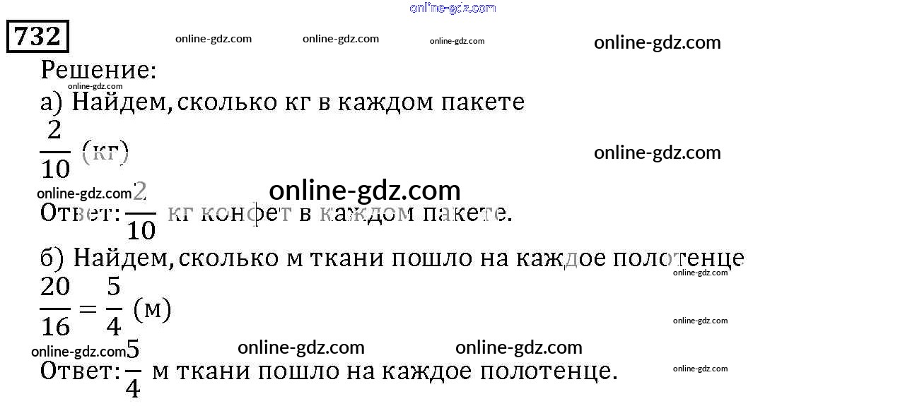 Готовые домашние задания по Математике за 5 класс Учебник Дорофеев, Шарыгин 2015 - 8.6. Натуральные числа и дроби Глава 8. Дроби 732