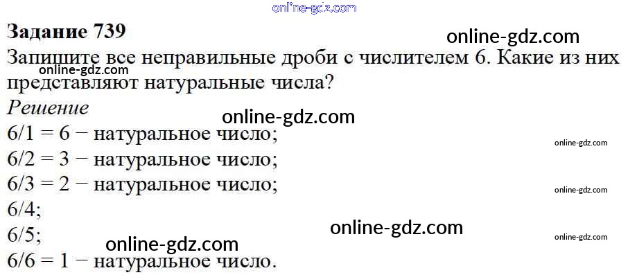 Готовые домашние задания по Математике за 5 класс Учебник Дорофеев, Шарыгин 2015 - 8.6. Натуральные числа и дроби Глава 8. Дроби 739