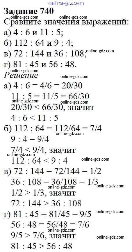 Готовые домашние задания по Математике за 5 класс Учебник Дорофеев, Шарыгин 2015 - 8.6. Натуральные числа и дроби Глава 8. Дроби 740