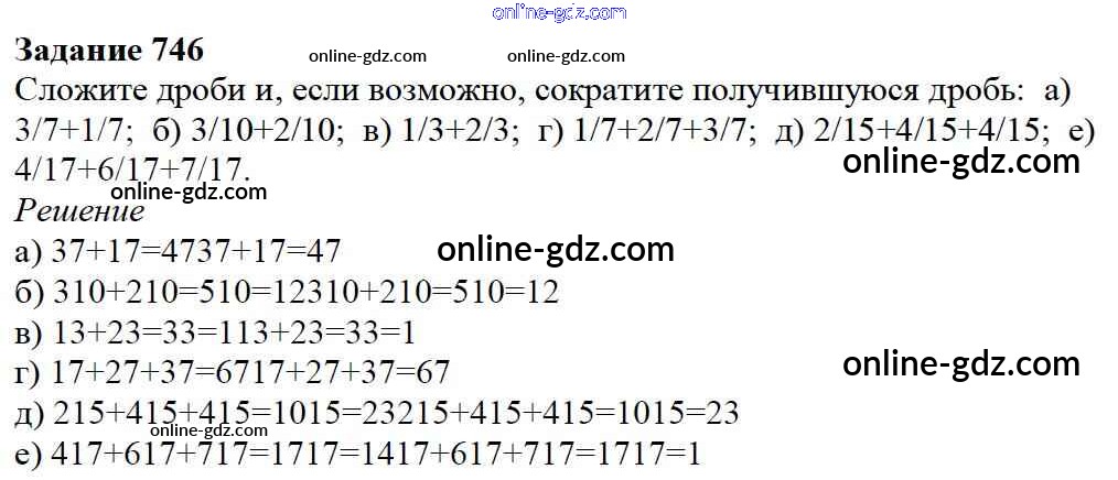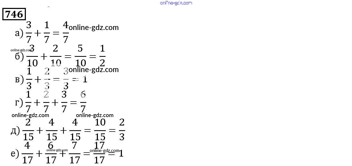 Готовые домашние задания по Математике за 5 класс Учебник Дорофеев, Шарыгин 2015 - 9.1. Сложение и вычитание дробей Глава 9. Действия с дробями 746
