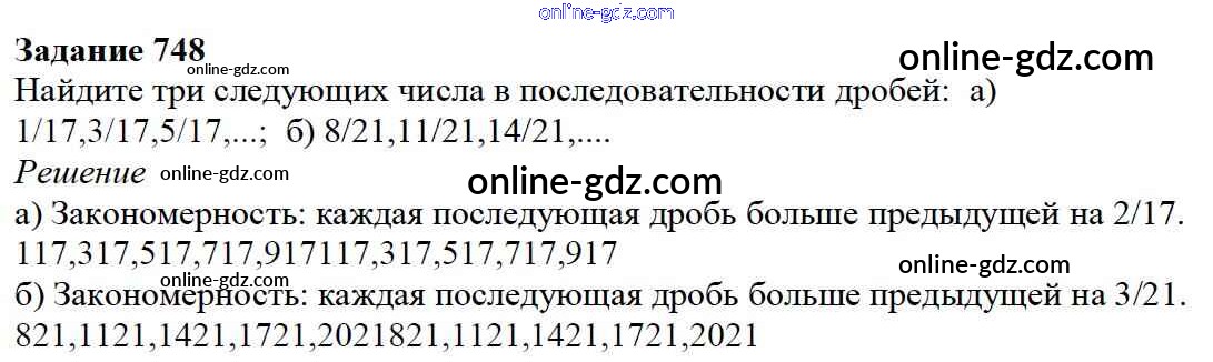 Готовые домашние задания по Математике за 5 класс Учебник Дорофеев, Шарыгин 2015 - 9.1. Сложение и вычитание дробей Глава 9. Действия с дробями 748
